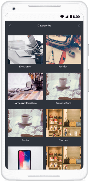 We have included ripple effect support to our XAML pages. The following GIF image shows the ripple effect added to the e-commerce category page. We have used the Syncfusion Xamarin Effects View control for this amazingly easy-to-use ripple effect.