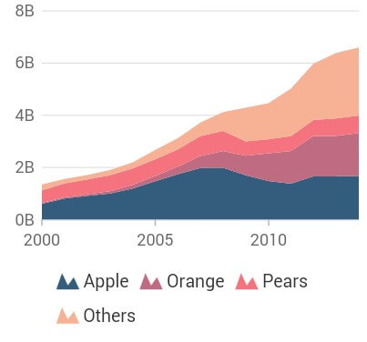 The stacked area chart is like an area chart, but the data points are stacked on top of each other. The following code illustrates how to render the stacked area chart.