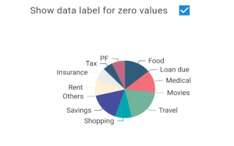 A data label and its connector line can be hidden for the data points with a value of zero. This is applicable to all the chart types in the Cartesian chart, circular chart, funnel chart, and pyramid chart widgets.