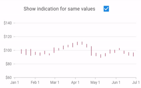 If the high and low values of a data point are the same, an indication (small vertical line) can be rendered to indicate that. This is applicable for financial charts like HiLo, OHLC, and candle.