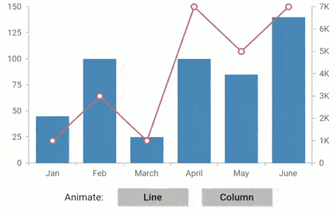 You can perform initial rendering animation in an existing series by using this feature. On calling the animate method, a particular series will be animated based on the animationDuration property’s value in the series.