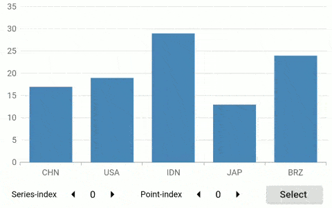 The data points in a chart can be selected programmatically by passing the point index and series index values to the selectDataPoints method.