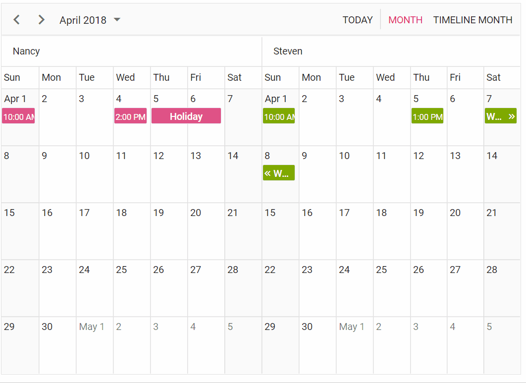 The Timeline year view in the Blazor Scheduler has the following new features: