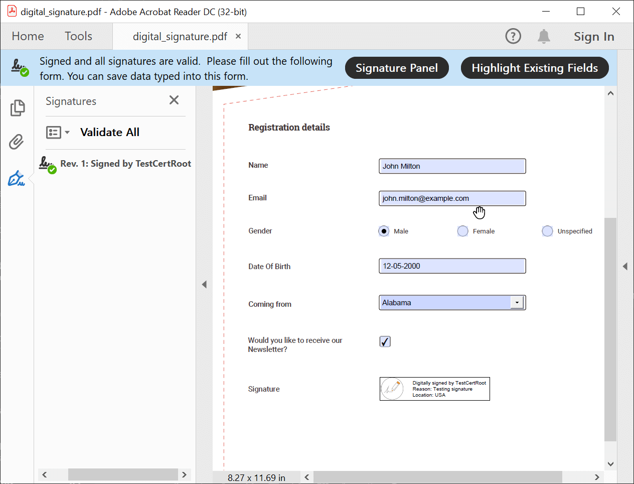 Note: For more information, refer to the Create and fill AcroForm fields in Flutter documentation.