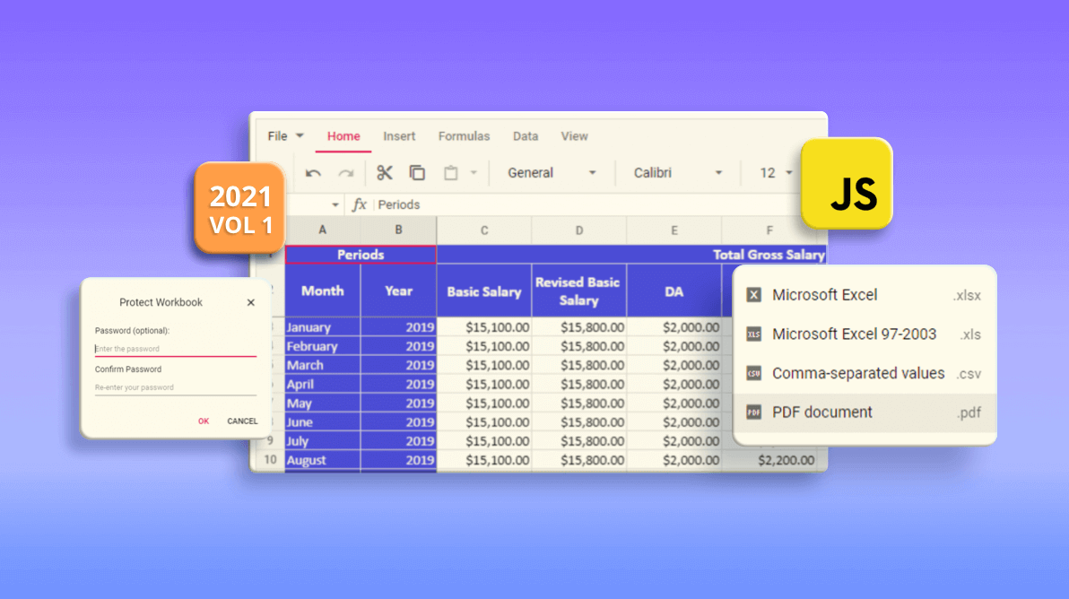 The Syncfusion JavaScript Spreadsheet (HTML5 Excel viewer) is a control for organizing and analyzing data in tabular format that provides some cool features similar to Microsoft Excel. It provides all the common Excel features, including data binding, selection, editing, formatting, resizing, sorting, importing, and exporting Excel files. In the 2021 Volume 1 release, we have added the following impressive features to the JavaScript Spreadsheet: