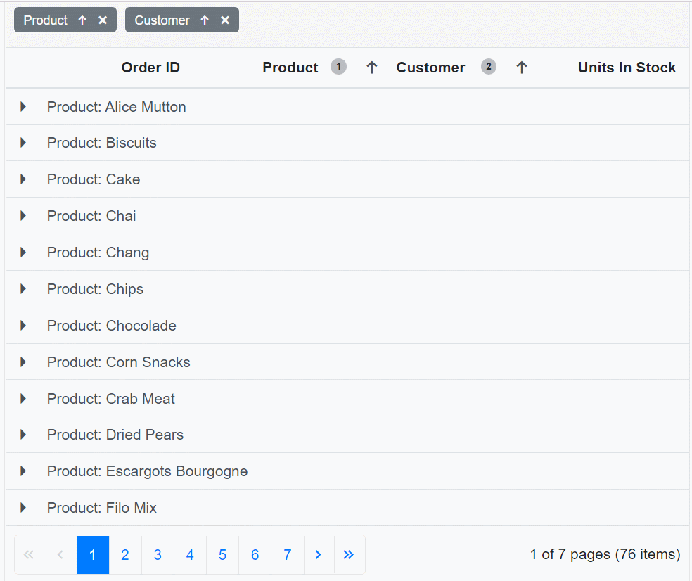 - Lazy loading with grouping: Render records in a collapsed state when binding a large volume of data through server-side grouping. The grouped items with n levels of data will be loaded on demand when the corresponding group is expanded. Also, refer to the Example of Lazy Load Grouping in the Blazor DataGrid Component demo for more details.