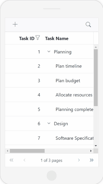 The Blazor TreeGrid component UI has been redesigned to provide a better viewing experience and usability on small screens. This interface adaptively renders the filter, pager, and edit dialogs.