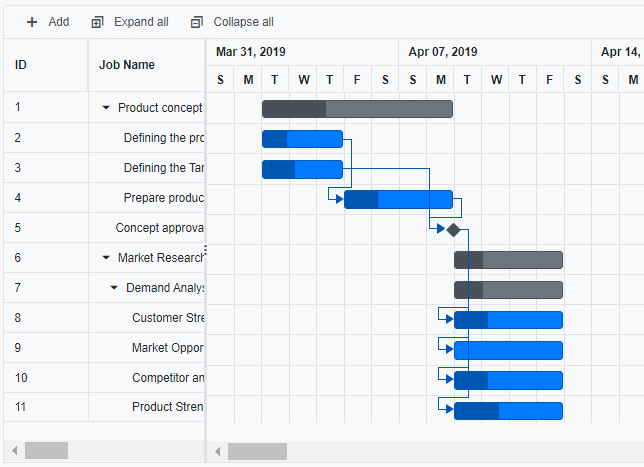 Now, we can establish task dependency between parent and child tasks or among multiple parent tasks in the Gantt Chart.