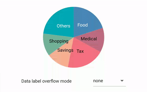 • You can trim, shift, or hide the data labels that overflow from their space in pie, doughnut, pyramid, and funnel charts.