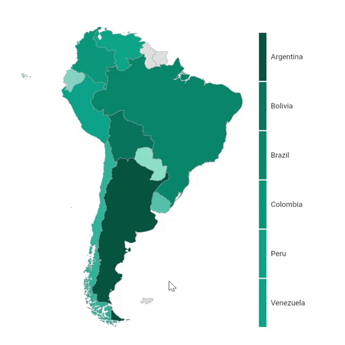 The Maps widget displays a pointer on the corresponding solid bar legend while hovering over the shapes or bubbles in it.