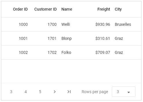 • Display a dropdown button for choosing the number of rows to be shown on each page.