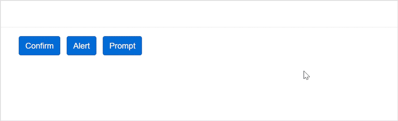The Blazor Dialog component allows you to render and show confirm, alert, and prompt dialogs on demand by calling the public utility methods.
