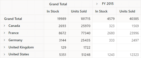 A built-in option in the toolbar UI lets users show grand totals (summarized totals) either at the first or last position in the Pivot Table component’s row and column axes.