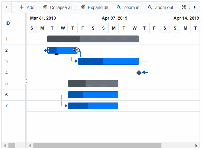 - Vertically auto scroll when the predecessor connector point is dragged near the top or bottom of the visible Gantt chart pane.