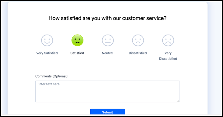 As soon as our customers receive a response from Syncfusion Support, our customer satisfaction (CSAT) survey, which is fully integrated into BoldDesk (Syncfusion’s email-based support help desk), is sent via email. It starts with this question: “How satisfied are you with our customer service?”