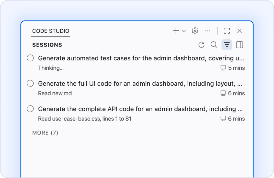 Code Studio helps you eliminate fragmented tools, long ramp‑ups, and unpredictable development cycles. So your teams focus on delivering real business outcomes.