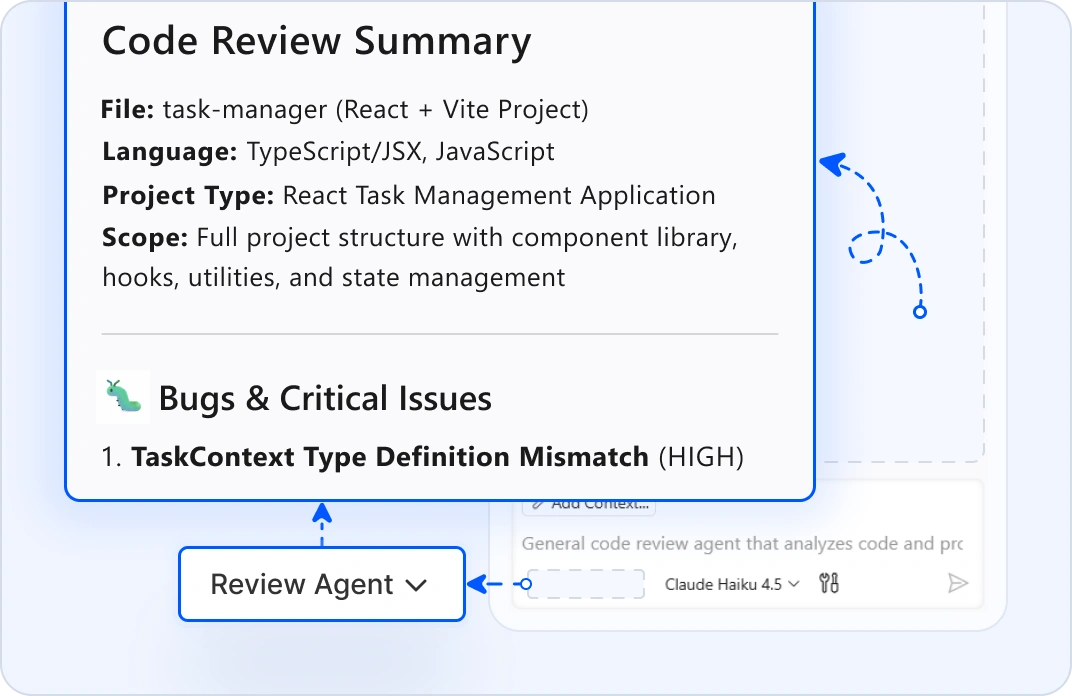 Maintain quality across every change. Code Studio enforces your standards, catches issues early, and ensures consistency. It’s like having a senior reviewer on every commit.