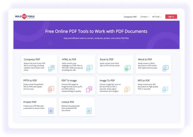 | Create a PDF document from scratch or modify an existing document. | ![]() |