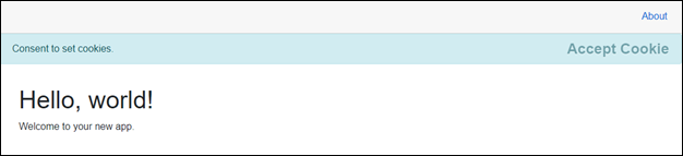 In the following example, the cookie consent banner temple will display to notify you to accept cookies. Follow the below steps to create a consent cookie in Blazor.