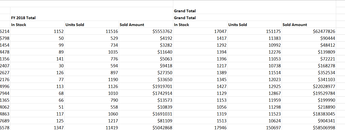 In pivot table column headers section, the same headers in same column is grouped where row spanning is applied. But, it won't be reflected in excel exported page. The row spanning isn't working properly there.