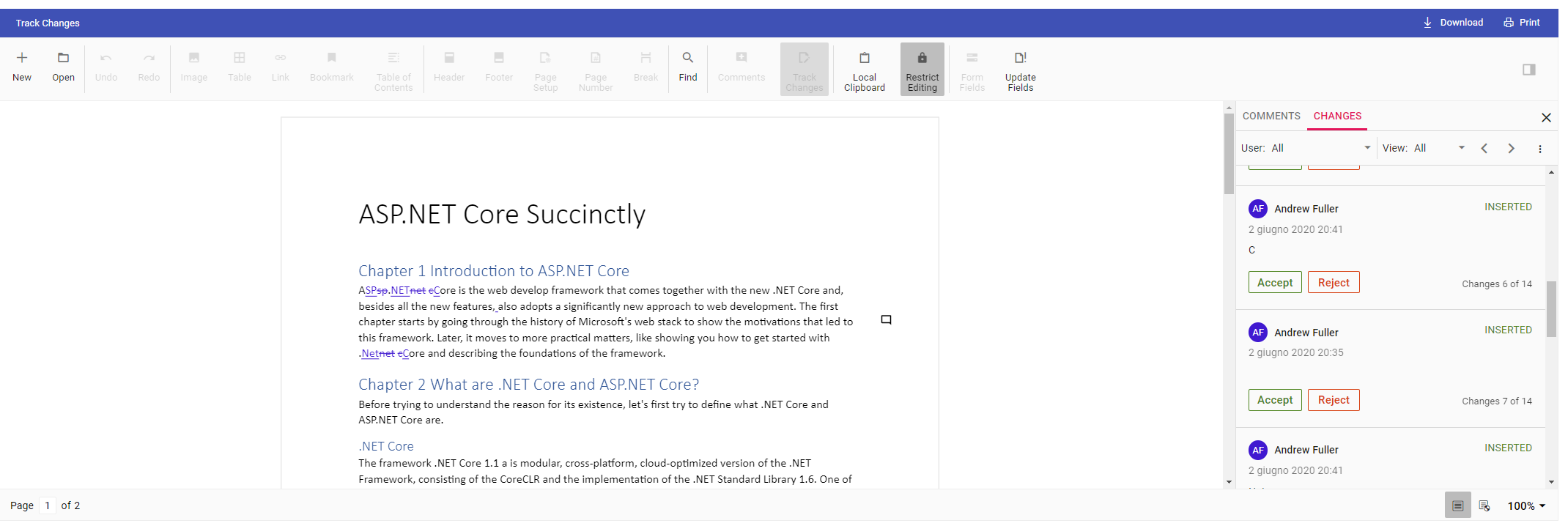 Editing a document should not be possible in restricted areas. By accepting or declining a tracked change, a user can edit a readonly document, or in general any area of the document, even the restricted ones.