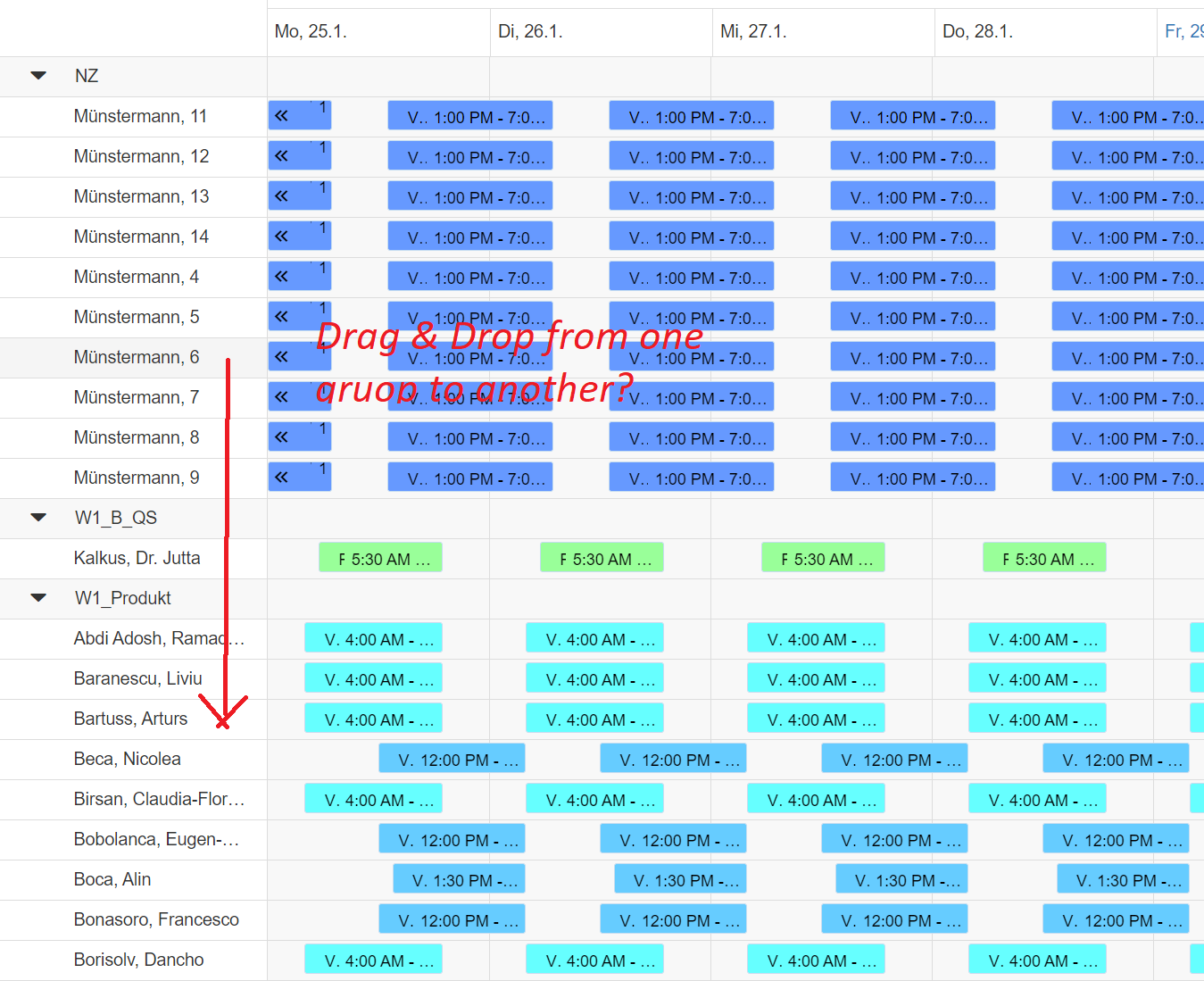 The Scheduler has support for resources with grouping. But we didn't allow to change the resource from one grouping to another by drag-and-drop.