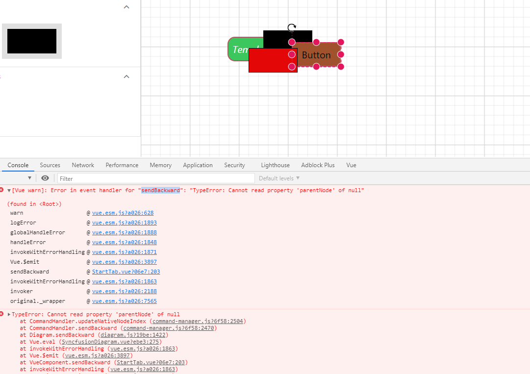 On the current canvas, there are many Nodes, normal nodes, and group nodes. When I execute the moveForward command for the last time, I get the following error: Error in event handler for "moveForward": "TypeError: Cannot read property'parentNode' of null" at CommandHandler.updateNativeNodeIndex (command-manager.js?6f58:2504)
