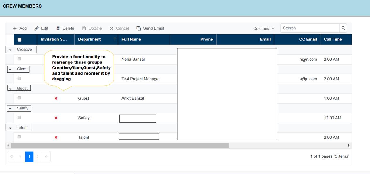 Below is the screenshot of the Grid : (Grouped column - Department)