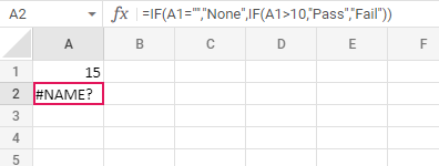Need to fix the nested IF formula issue in spreadsheet. The formula values not parsed properly for the nested formulas (=IF(A1="","None",IF(A1>10,"Pass","Fail"), =IF(SUMIF(A1:A6,"<0",B1:B6)<0,1,2)). Need to ensure all dependent cases for the same related formulas