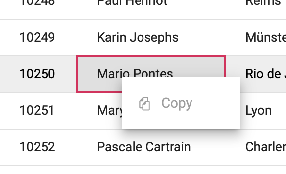 I have enabled the Copy context menu item. It's showing up when I right click on a cell, but it's greyed out and not selectable.