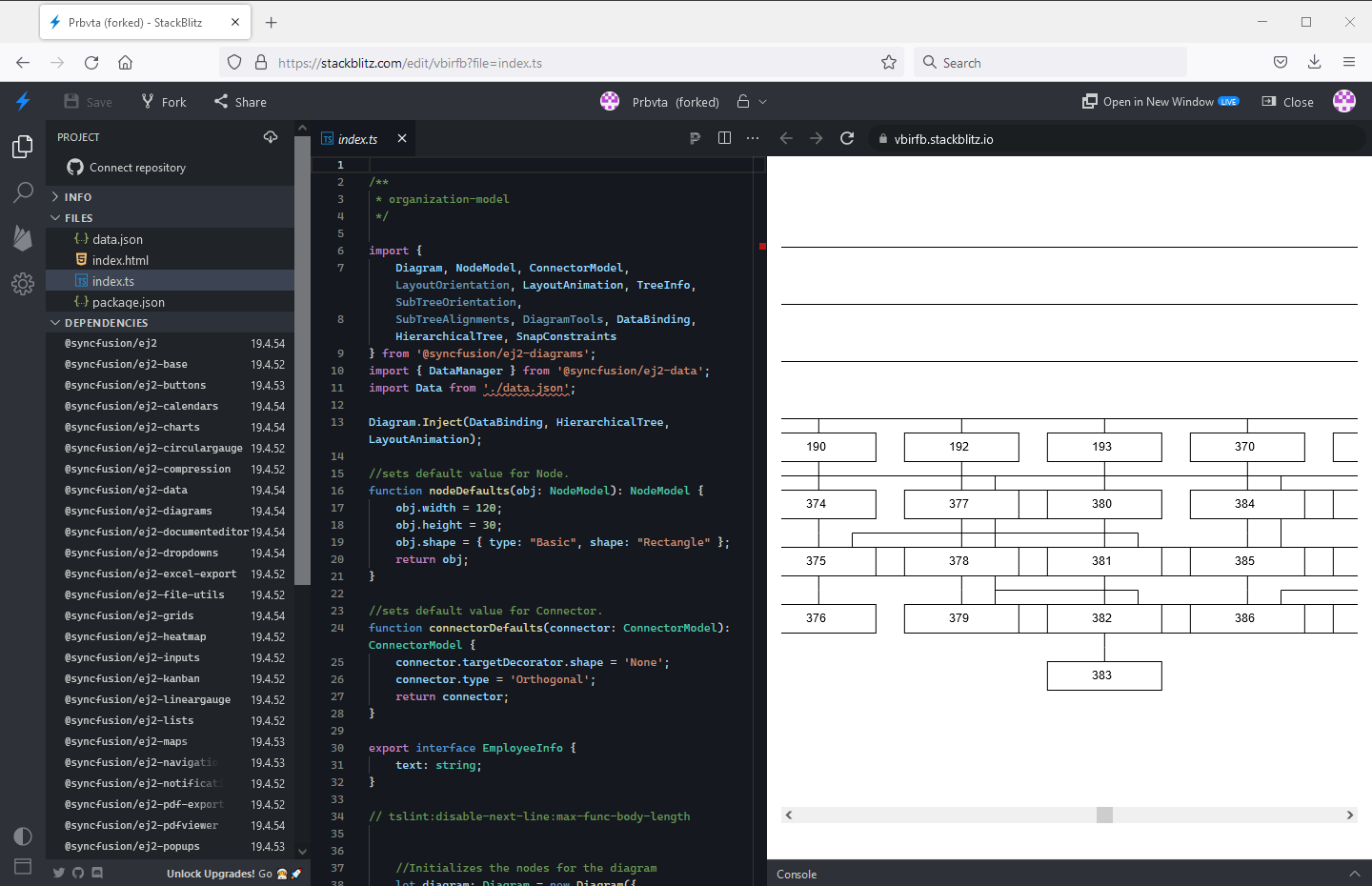 When the diagram is bound to a large data (about 400 records in my case), some nodes are overlapped. I notice that the issue only happens with nodes on the right haft of the diagram.