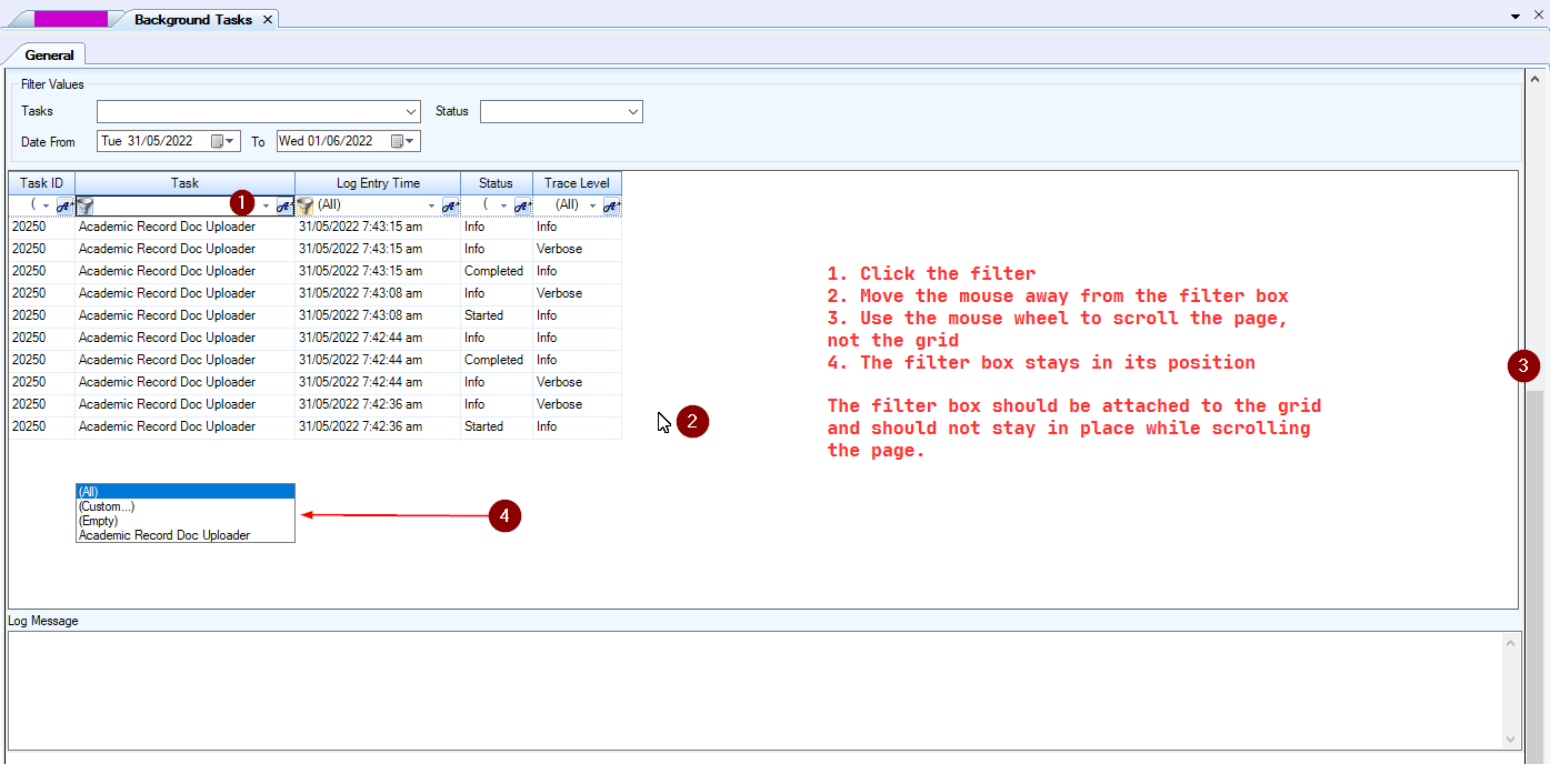 Move the mouse away from the filter box, do not click anywhere.