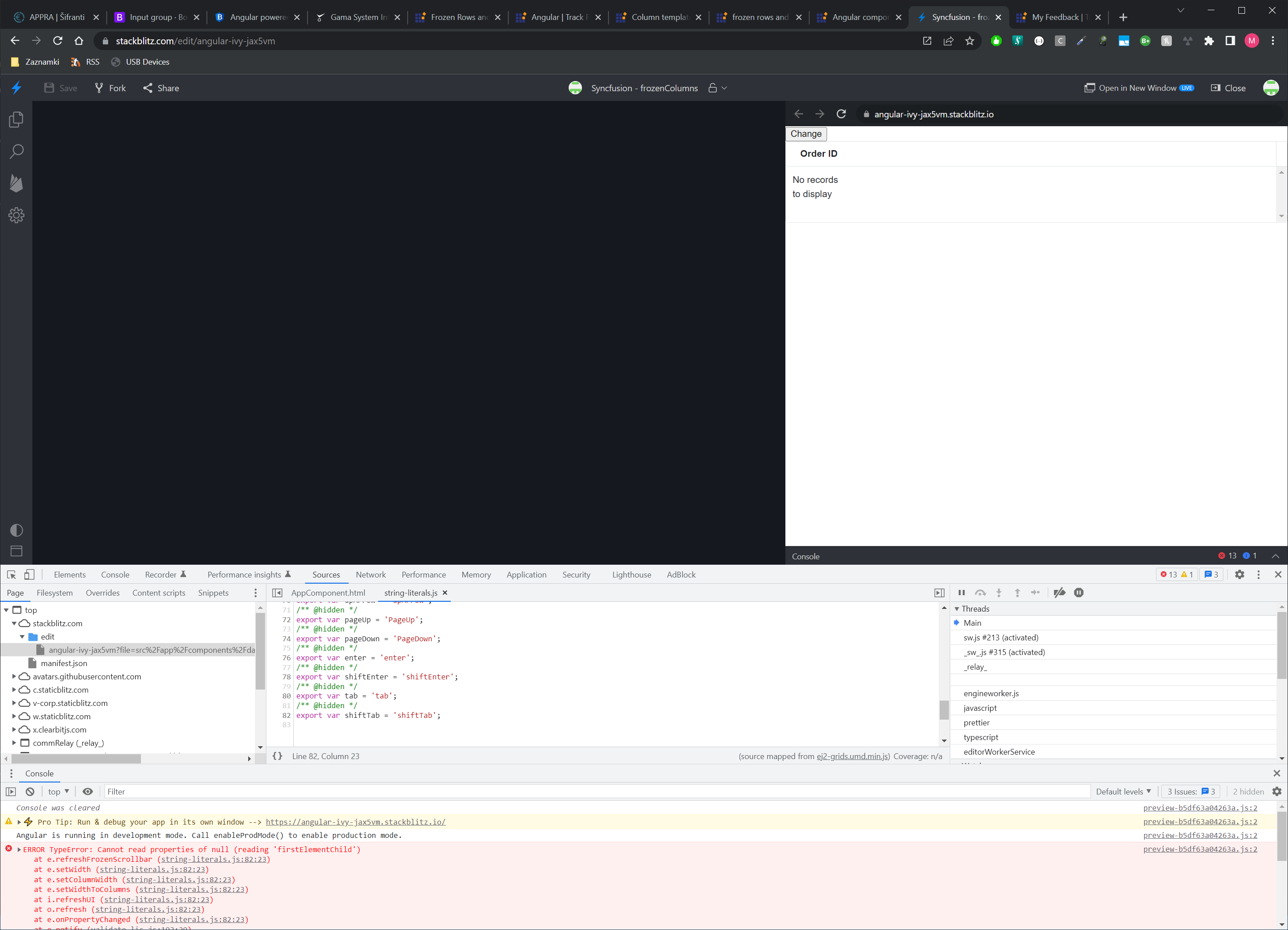 - there will be an error in console output "Cannot read properties of null (reading 'firstElementChild')" in function "refreshFrozenScrollbar" and grid is not properly reinitialized