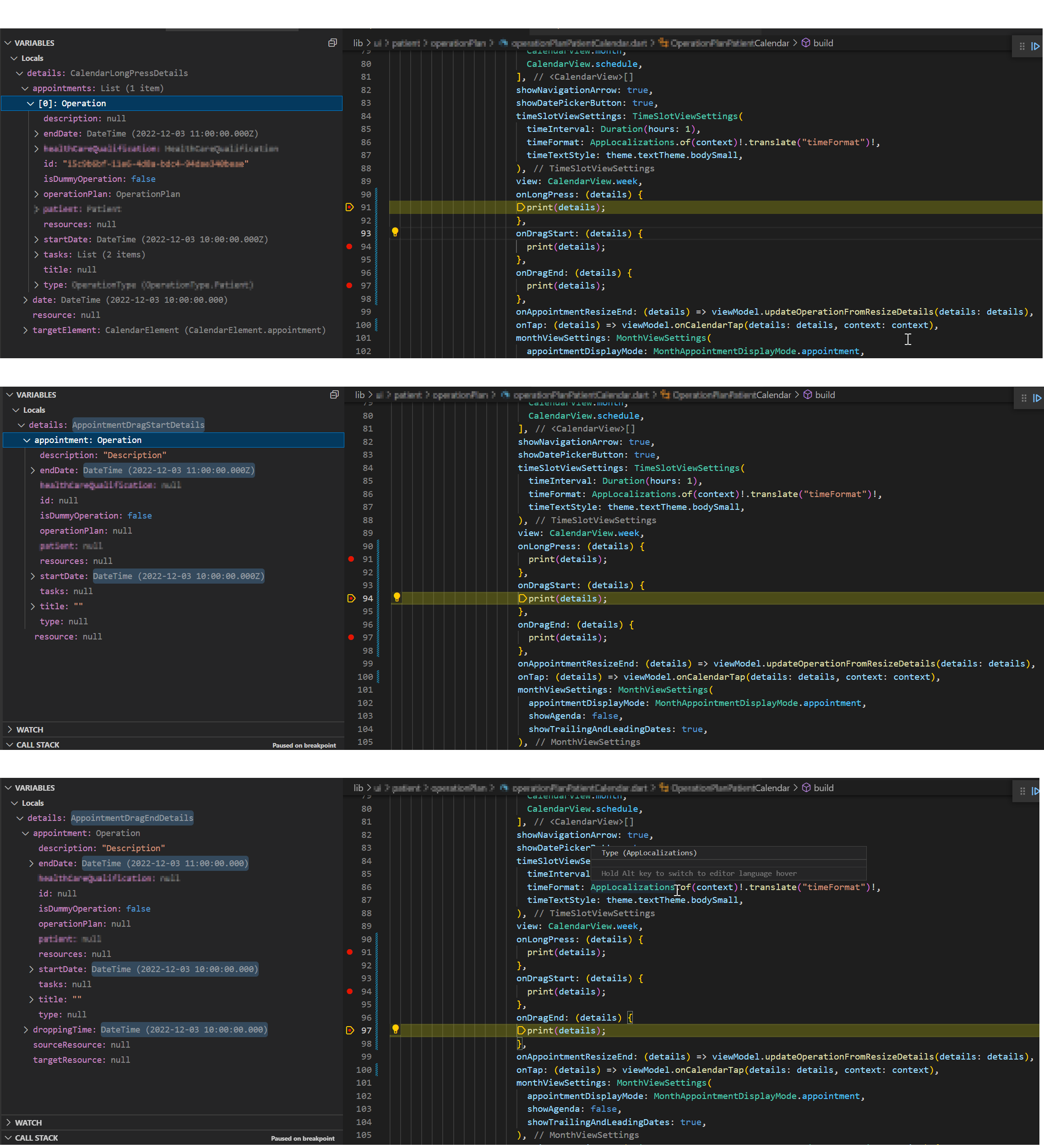 I'm currently implementing Drag&Drop with custom appointments. It appears that within the Drag-Callbacks (onDragStart, onDragUpdate, onDragEnd) the custom arguments of the event-details are null. In the onLongPres event everything works fine (appointment details are available in a List as in all other callbacks).