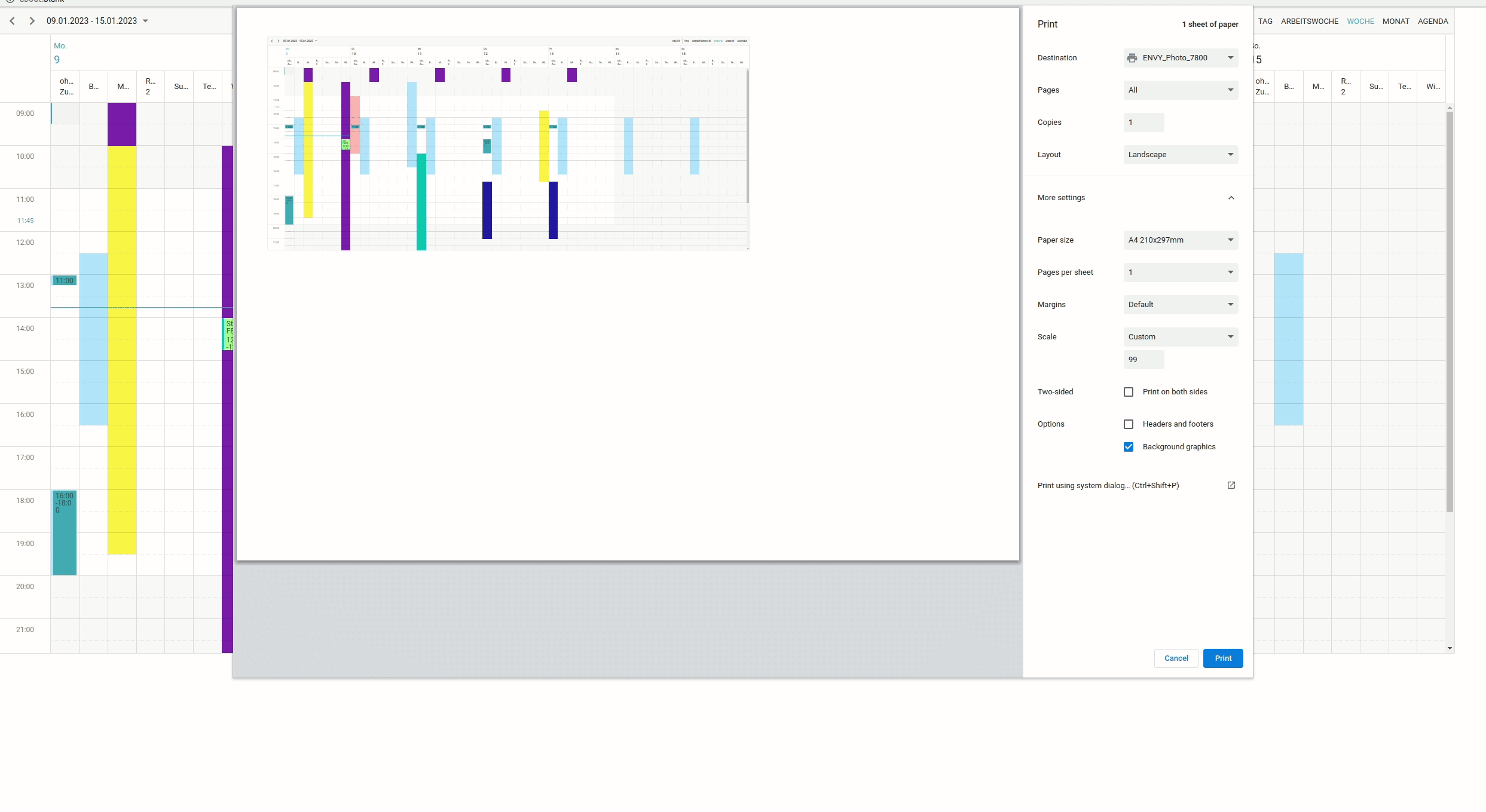 When printing a schedule with Orientation "Landscape" and Scale Default or Custom >=100, 2 blank pages are displayed in preview and printed as previewed.