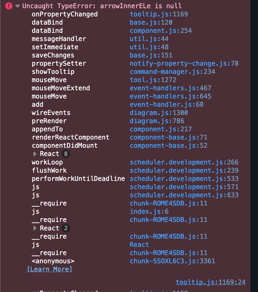 I attached a screenshot of the stack trace. Looking at the code, it seems to be accessing the arrow DOM element without checking if it exists.