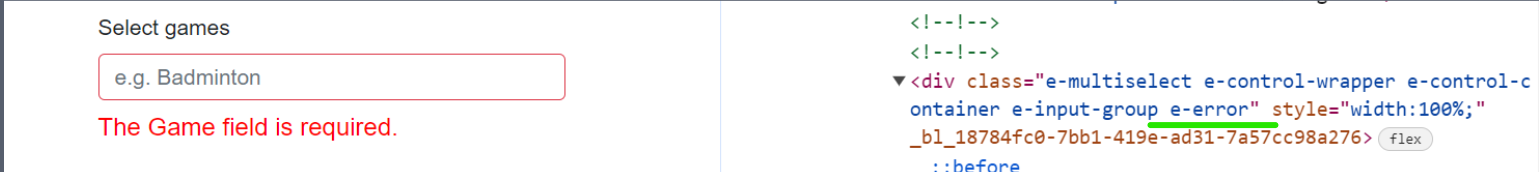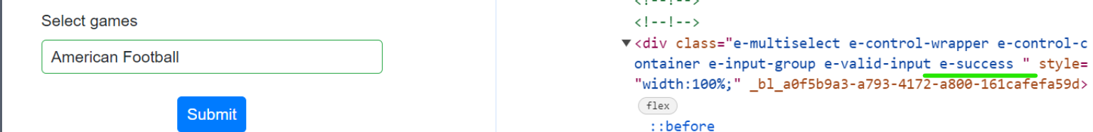 When validation is performs, the valid and invalid class is not added to the component only e-success and e-error class is added.