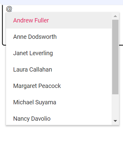 Demo: https://ej2.syncfusion.com/demos/#/material3/mention/multiple-list.html