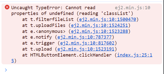 “Cannot read the undefined classlist” console error occurs when programmatically uploading the file with showFileList as false.
