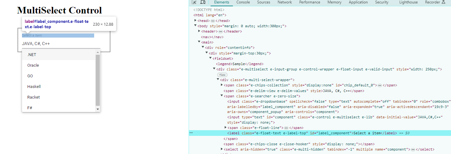 Current Output: It shows the accessibility error due to for attribute not added to label.