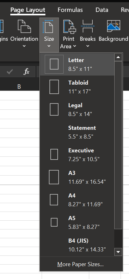 By providing the page size option in page layout options in Spreadsheet, the user can be able to adjust the paper size of the file like A3, A4 and A5 etc.