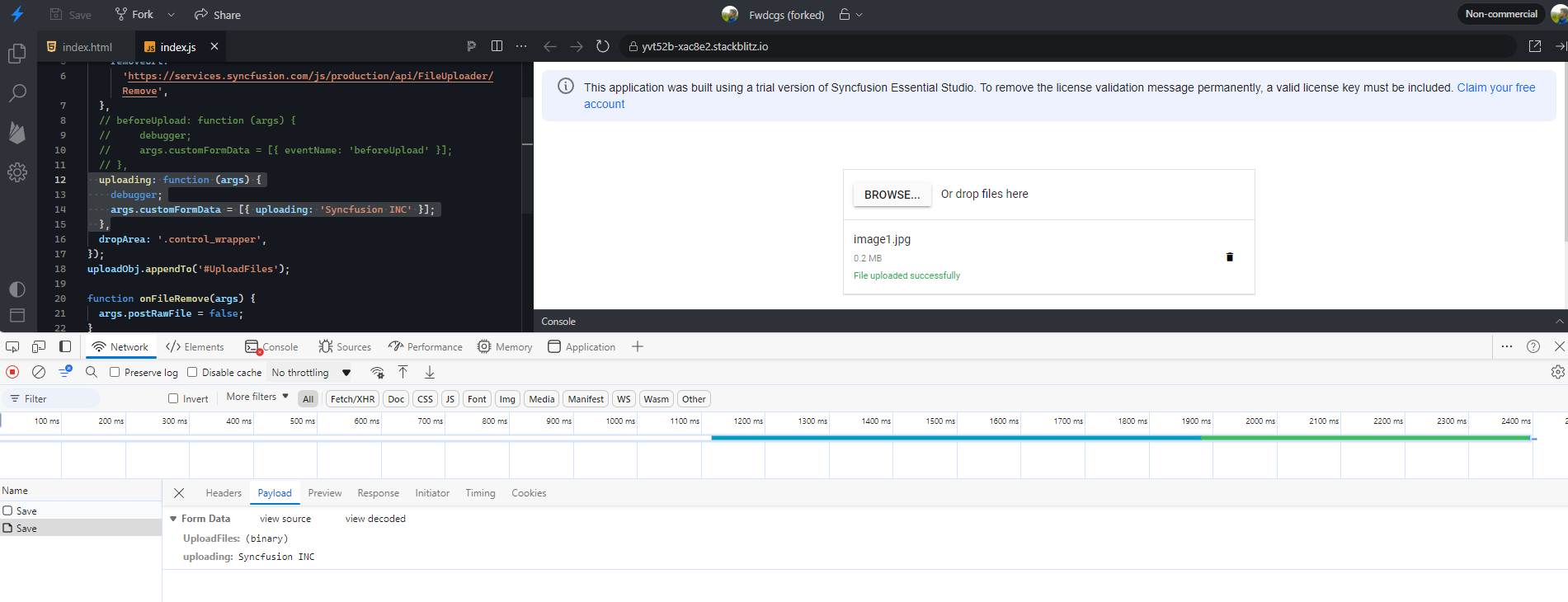 Unable to add custom form data in the beforeUpload event. Although the beforeUpload event arguments support setting custom form data, this data is not updated in the AJAX formData. The updateFormData method is not called during the beforeUpload event, which is responsible for updating the custom form data.