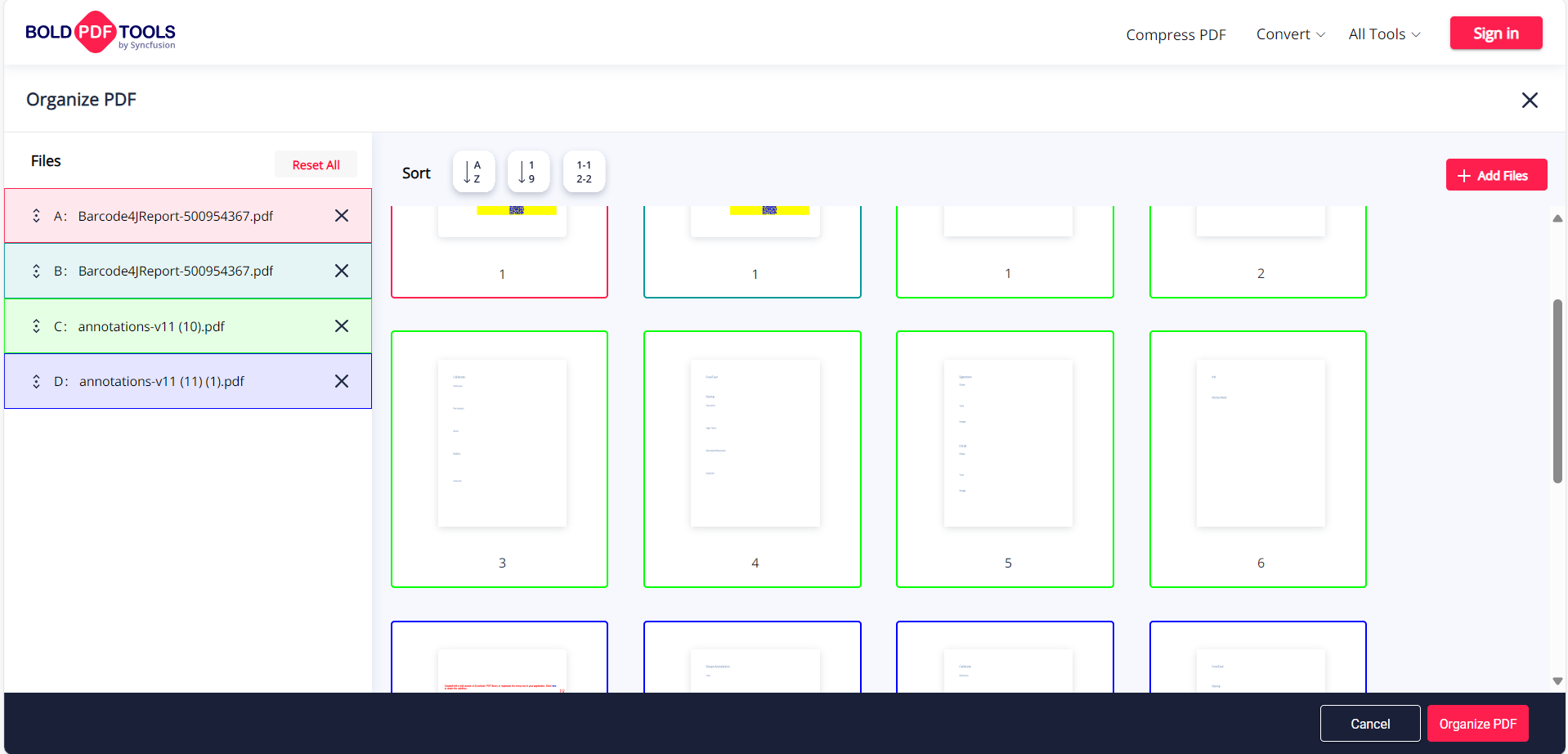 Display the list of imported files in the Organize PDF Viewer like in bold pdf tools.