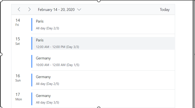 For example, in the Agenda view of the schedule, if an appointment starts on April 13 and ends on April 15, the startTime and endTime for April 14 and April 15 are not retrieved, so the appointment span count cannot be displayed. The respective startTime and endTime need to be retrieved.