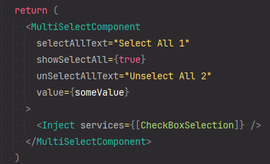 While evaluating Syncfusion's components, in the MultiSelectComponent, when using "showSelectAll" together with "unSelectAllText" / "selectAllText", I get a content warning: