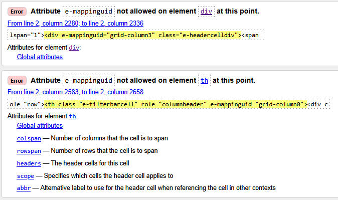 Please validate the Data Grid part of the html markup, taken from your official page: Data Grid Demo