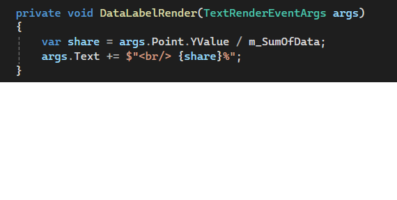 I want to customize the data labels so I have hooked up SimpleCharts OnDataLabelRender event where I want to customize the Text as see attached.