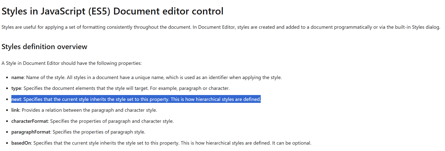 The selected line about the "next" part seems wrong as it just repeats what is said for the "basedOn" line. As far as I know it should say something like: "Defines the style that is applied to the next paragraph (after pressing enter)".