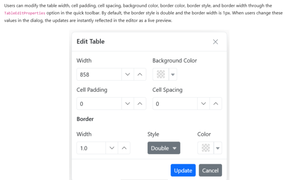 There was a feature request to implement a border settings like sizing and styling with this ticket