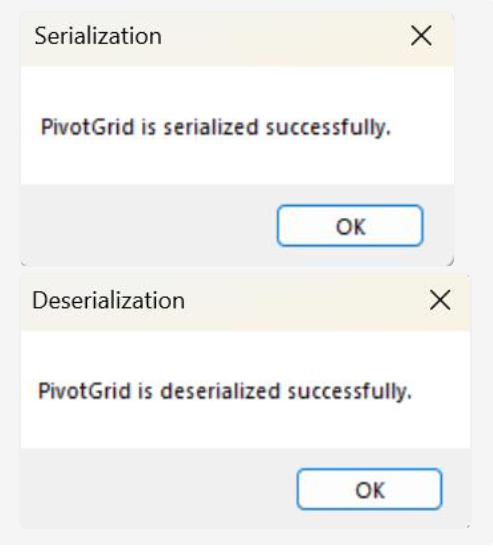 Provide option to enable and disable the message popup during serialization and deserialization process.